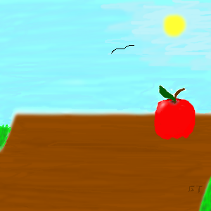 Just an apple. I got the shine from the blur-thing. I luff it!! And the grass was blended the same way.. as was the table.. as was the sky.. as was the sun.. ya know what? I really like that blur effect! ^^;;