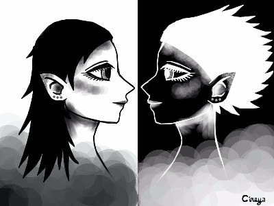 This is really cool. I like how their faces appear the same but the hair is opposite along with the color.