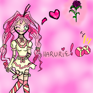 I like pink dollish cartoony girls, hehe, your dad drew the flower very well too! Tell him to draw more doodles please! >;D