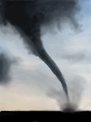 Pretty interesting...deffinately has good form. I like that you have the touch of blue in the upper half of the canvas. I love the watercolor effect for the dust, but I always think of tornadoes as very violent and active/rapid, so perhaps if you added a little more texture it might even have more of an emotional effect. Either way, nice job.