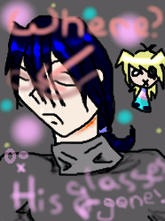 xD Couple characters from a story I'm writing. The demented looking chibi in the background is the kinda main/narrator/storyteller, while the person in the front is who the narrator's story revolves quite a bit around. =3 He's supposed to have glasses, but in a particular part, the km/n/s is curious as to what he looks like without glasses. xD He looks; 1) Younger, 2) Grumpier, and 3) Like an entirely different person. This was rather fun to draw, myes... :D