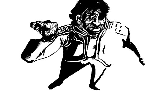 Couldn't get the right kind of brush strokes with this applet to do a Frank Miller type picture. So instead you get a picture of Brick Stone kicking the shit out of Senator Dirk Manchest. [Epiglottis]