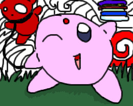 (^_^) It looks like Kirby!..I like the Red bear thing in the background!