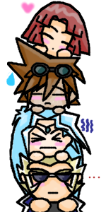 (^.^) LOL!Alister : Yay! We're a Totem pole! Valon : No, we're not, Alister.. Dartz : You're..crushing..me.. Rafael : Oh, C'mon, I have all three of you ontop of me and i can only feel about..40 pounds on me.. (that's why i put rafael on the bottom..because he's the strong guy)