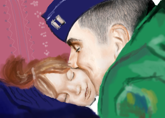 This is adorable. I love how you have his cheeks and both of their faces have a very human quality. Very very nice. I am excited to see this finished. Both of my grandpas served in wars and one of my best friends is in the service now-very touching and very real. Good job.