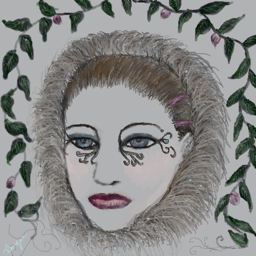 Was playing with textures again. I really enjoyed doing this one. :P Left her face kind of simple. Had fun with the vines and flowerbuds.