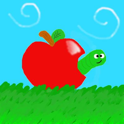 Nice job, Sam. That worm seems to be wondering if he ate too much of the apple.
