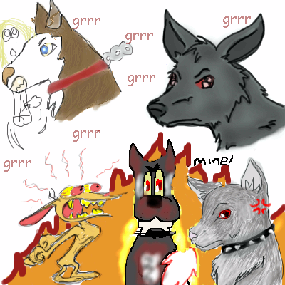 Well, you do not have to draw angry dogs but it would be nice if you did. I will probably not get the chance to let people in until tomorrow though. You can delete what I wrote, I would like to do the bg but if someone else wants to they can. I think there is space for 5 people, oh and please don't take up to much space. I may draw mine samller later. ^^