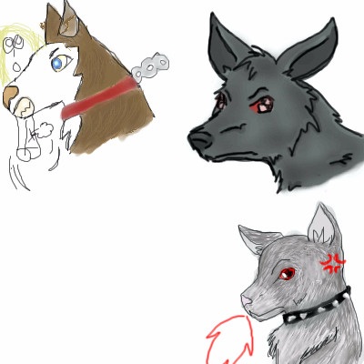 Well, you do not have to draw angry dogs but it would be nice if you did. I will probably not get the chance to let people in until tomorrow though. You can delete what I wrote, I would like to do the bg but if someone else wants to they can. I think there is space for 5 people, oh and please don't take up to much space. I may draw mine samller later. ^^