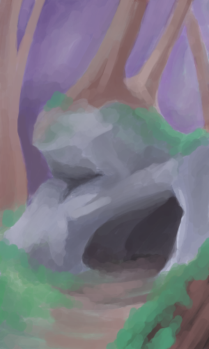 I see a cave, and a fairy and a moose/horse and a dinosaur of some kind .. depends on how you look at it.. Its a really good draw/paint :3