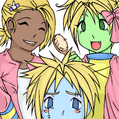 :DDD very cute so far! maybe if you made the blue girl's neck a bit thinner it's be good? :D I'm loving this so farrrr the outlining it greattt :DD <33333