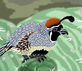 This is a newly fledged little quail, who is going to be perched on something when I get done. (I used a photo for a reference. I love these little birds that wander my backyard X3 )
