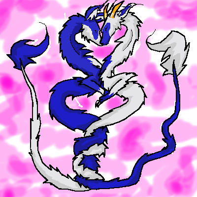 I drew a picture just like this before.. so I thought I'd try drawing it by computer. It's really fun drawing the tails coiling together.NOTE: the one on the left is female. the one on the right is male.