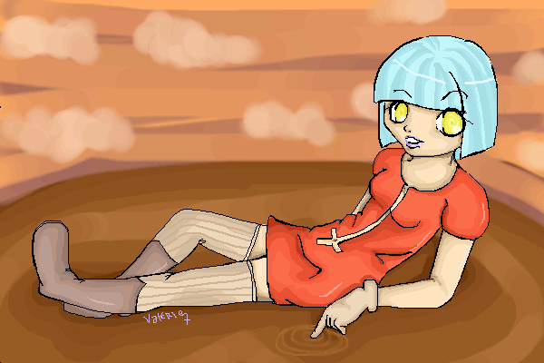 I just drew a random girl. She've got Lumiere's and Eclair's clothes (Kiddy Grade). 'Kay, I mixed them a bit but whatever.I really like her eyes ¤___¤