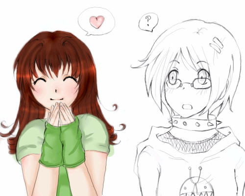 Needs a title x_xCollab with Maiko. I draw myself, she draws herself, and then we color eachother. Sorry it looks so sketchy D: When I lineart it, it will look better and less stupid. Promise! You can start whenever you want~