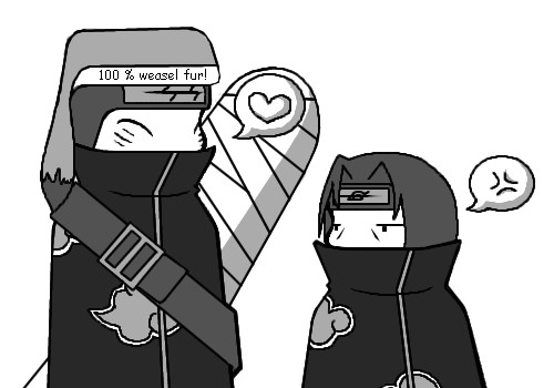 DoOp, Itachi's name means "weasel". I'm pretty sure you can understand what my point is after that ^^ SanzoGirl, glad you liked :)