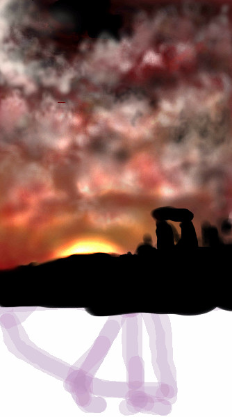 Well..I dunno what the plans were, but I like this quite a bit for the glowing sky and the stylish bones and the stonehenge