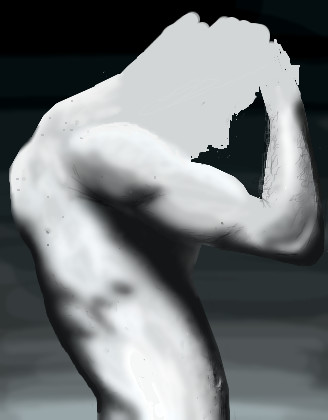 Looking very good. It's not his shoulder, it's that hump on his back, the muscles back there shouldn't be so defined.... can't wait to see what he looks like. So far, nummmmm.