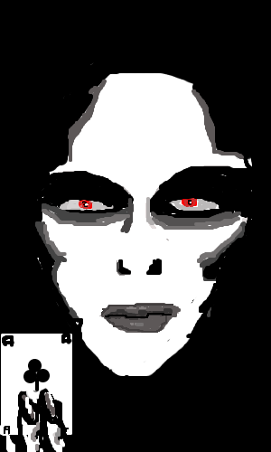 there is a story about a earl who played cards (hence the card) with the devil and lost his soul,it was told to me long ago when i was three,and i was terrified of it.i used to have a nightmares about,with a face like this one apeearing all the ytime