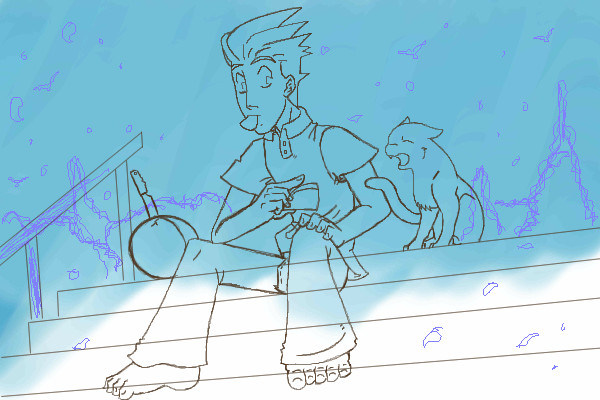 And now to present you guys the finish piece................This pic. have gave me alot to problems since I stared to color it..........>-< I have been coloring it for about three times now and this last time I really love the best, so heres Aikiko eathing water melon, wille his cat Mikuro is just yawing the moment..............^-^ I'm really glad this is ove guys...............TuT .........Logging of Lore.V.............