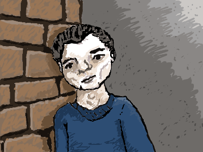 Pretty cool style you have. He's doing a great job of holding up that wall. :)