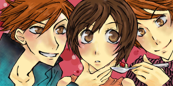 Not finished... still some things that need correcting...and it's imperfect besides. this is another Ouran High School Host Club fan piece. The two boys are the Hitachiin twins, Kaoru and Hikaru, and the girl in the middle is Haruhi.