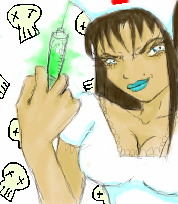 Er, hands are satan. Besides that, I didn't see any evil nurses with big boobs or spanish people here so I drew both. Well, I haven't seen them lately, is what I mean. :| Gah, forget it.