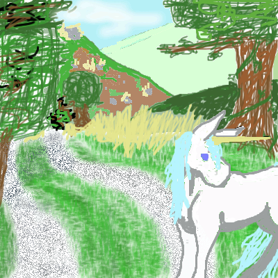 if you haven't seen the Last Unicorn Before, i suggest you should, tho unicorns aren't me specialty, i still think the movie is charming! ^w^! the song is from it, too, and i haven't seen the movie in years. but i wont go searching for it in the abyss that is the garage. heh! enjoy my sucky unicorn in an awesome backround!