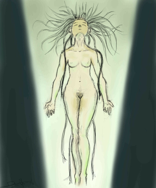 nice head angle, i can't draw that angle no matter how hard i try. your shoulders are alittle small tho, as in thin where they meet the upper arms. oh and add nipples.