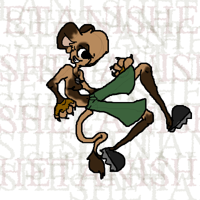 An anthro character I made up today. =3 He's a lion, in case you couldn't tell. XP Shetani means "devil" in some African language I forgot the name of. X_x; Sorry if the lines are shaky, I had to draw this with my ring finger sticking up, because some idiot smooshed it. XD It's all...Purple, now.