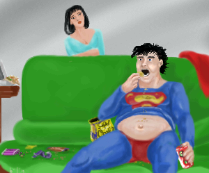 Forgot the essentials of junk food, candy. Poor poor fat slob of a superman.