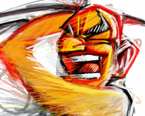 I rather like this style. It looks like he's striking out at something.