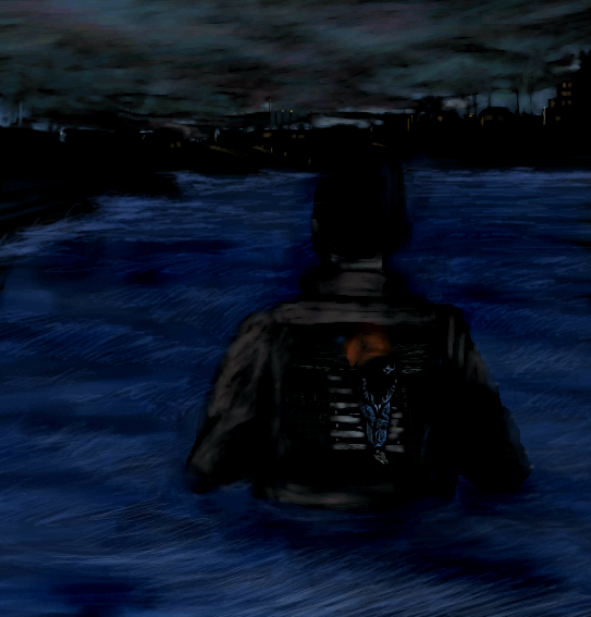 People can come up with many weird reasons for why you chose to put this tiny, bent man in the back of a man, walking in water etc. I dont think it really matters.