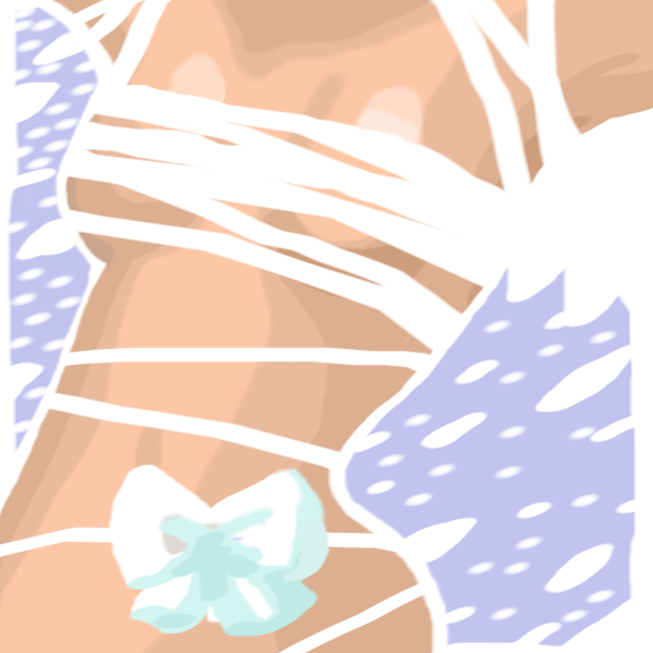 I really like this. Has a poster advert feel to it. Good use of solids and nice colors. Only thing if those are her nipples they're too high. As the breasts are resting they'd be covered by the ribbon. And her left breast is smaller than the right. move the line in the middle that seperate her breasts more to her right and they'd be even. Hope you try more like these.