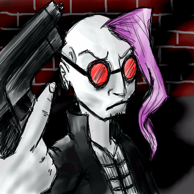 General Gustav, of the World NeoNazi Movement. Reference for the gun is from a vector drawing found on Google images search keyowrd "handgun". I think he's pretty cool. (I'm not a Nazi)