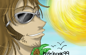 EDIT: Forgot to shade the Palm tree. That's sad. D; And the coconuts. Thickened the lines by his chin/neck to make it more obvious, too.