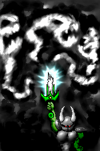 I really like that glowy effect. What I think you should maybe add are swords of different varieties surrounding it. As if all of them were resting on a table. That would look coo'.