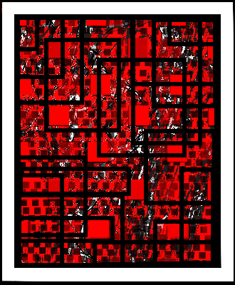 "My disposition and my desires call for peace to spin my thread, for a steady rhythm in life and art." For somewhere in my fifties the desire of my heart turned from public speaking to the steady rhythms of writing to spin my head." This work of art has steady, regular, angular, rhythms--perhaps rhythms is not the right word--directions back and forth, back and forth, much like my writing--ad nauseam--back and forth endlessly....as I say much like aspects of my writing. I might add that the surface of writing is like the up-front black lines in your work--with a background which is as critical as the forground--indeed, an essential juxtaposition. I enjoy looking at art through the lens of my writing.