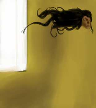 It doesn't even look like her hair is blowing, per se, but rather has an energy of it's own. You can see the life in it. Sort of... mystic looking, I'd say.