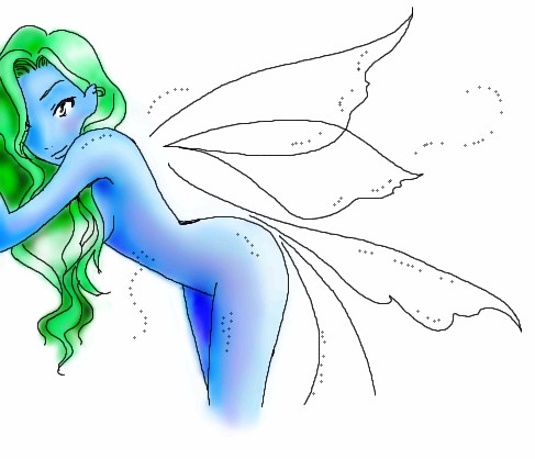 Here you go, Visceral. If you're wondering what those dots are, those are little pin-points to show you the possible places of adding sparkle to the picture. Like.. Little glow dots on her flesh, or on her wings, things like that. I was thinking that you could draw water down where her thighs end. Have fun! Work hard. >.<