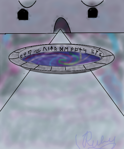 I used htt'://files.meetup.com/1185-/anglo-saxon%20runes.gif for the runes which spell out "vita de fons" or in English, Fountan of life. This is based on an oil pastel that I did a while back, but I had a hard time with the texture on the castle in the program.