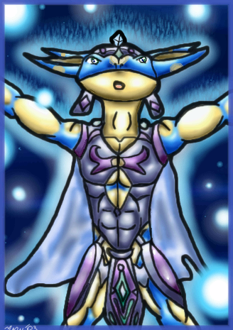 Yay! I managed to finish it before I go to bed, as I have my first day of School tomorrow.Here he is again, and he has new, shiny armor, and a powerful, shiny healing spell. My affinity for things that shine shall never die. Sigh. Comments and Criticism are welcome, of course. There is always room to improve, especially in my case. ._.