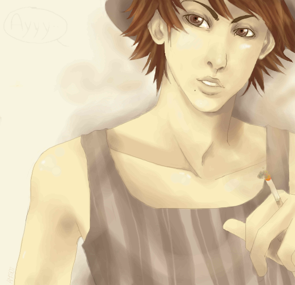 He looks cool :D. I love your style, especially how you draw noses, and there' just this overall gawk-worthy quality to your pictures! I loved your oekakiart stuff too, all of everything you do is amazing :3.