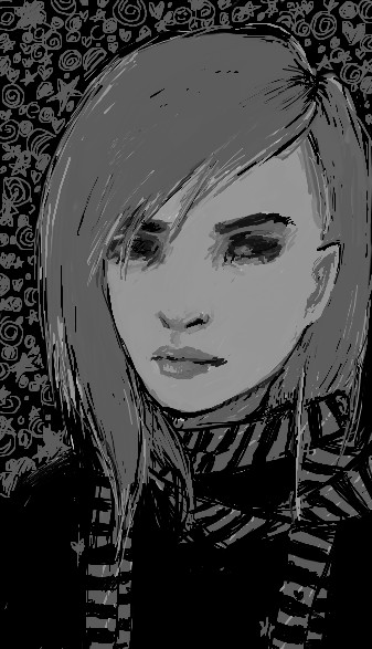 Nice monochromatic picture. With the scarf I thought she was Hormianie (spelling?) from Potter.