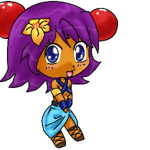 Yesh, well. She looks like an animal. >.<I have a wacko chibi style lol. Need to fix that. And I had no idea what the red ball things were in the ref pic, so they're just randomly attached to the head. Maybe some kind of hair clip...? *that's stretching it...*
