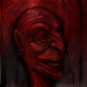 His nose and ears are making me think 'goblin'. Nifty little guy, and your anatomy and painting skills are excellent.