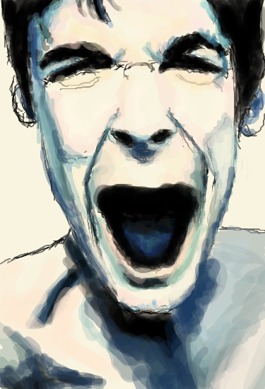 oooh this is cool. The blues and peaches together and the little crinkles around the eyes are perfect. I love pictures of people screaming.