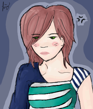 Then why is she wearing one? xD Actually, I can't say I'd want to be wearing that either actually. Nice colour choices! And the expression looks great too. Boy! Does she look ticked off. x3