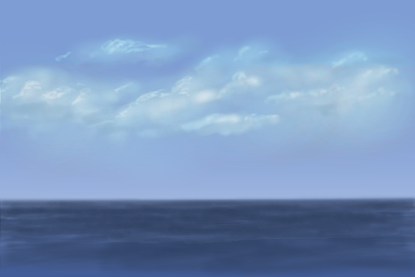 The clouds are nice but the water looks like blue straw.