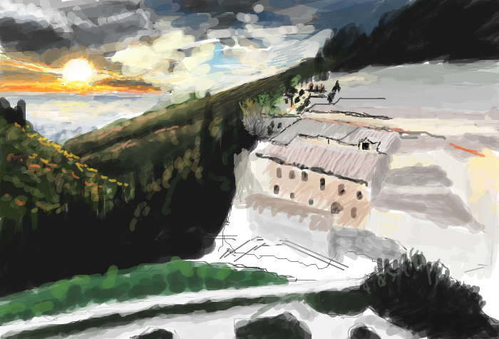Wow! beautiful! Looks like the sky is on fire.. <3 Can't wait to see this finished! :D